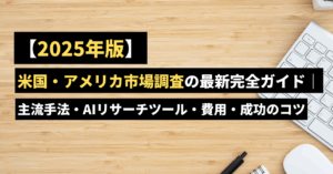 → 国内市場以上に「現地専門サービス」「言語・文化ギャップ」「現地法規制」など独特のハードルがあります。米国市場調査 完全ガイドで基礎知識・主要ツール・注意点もフォローしましょう。