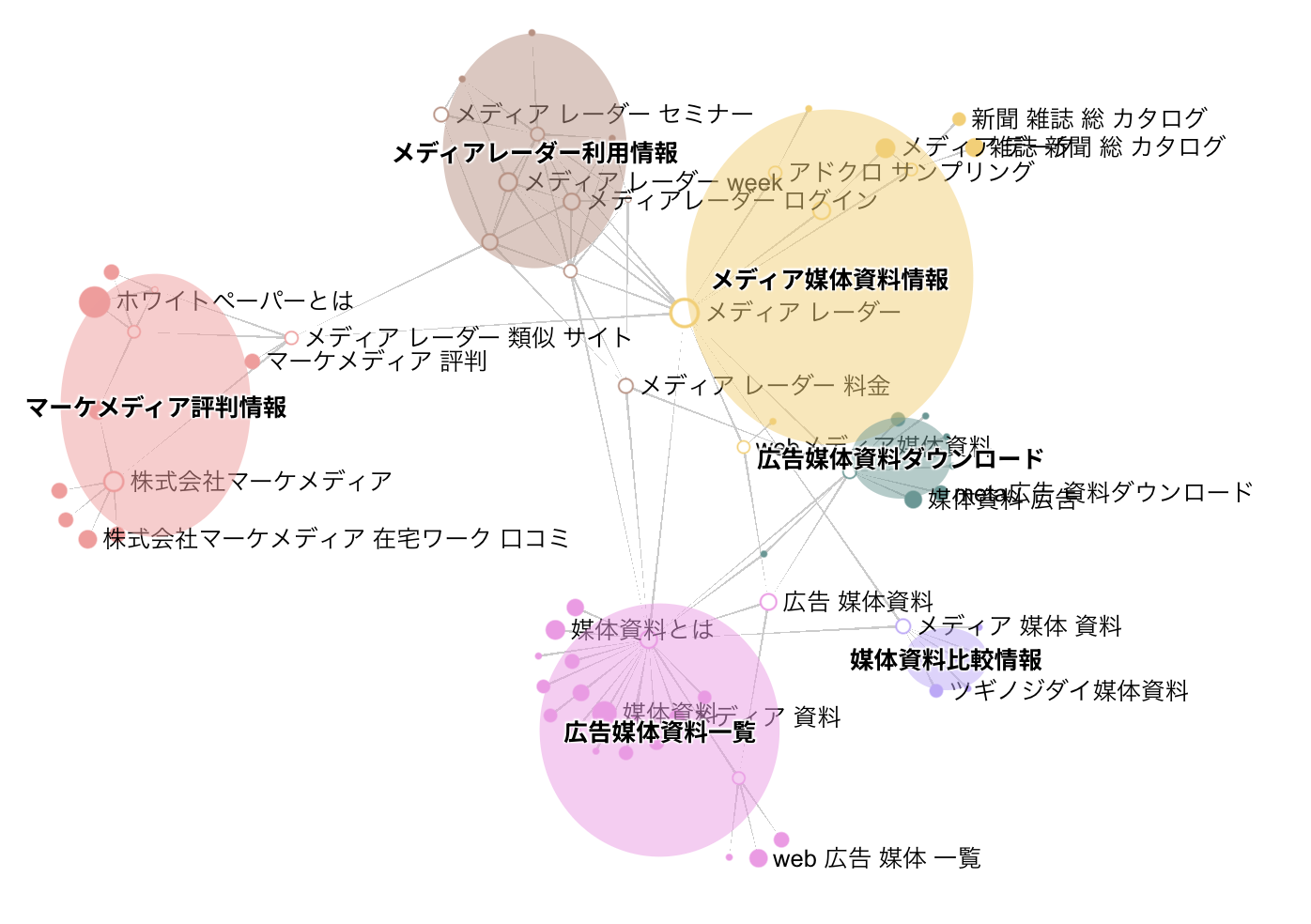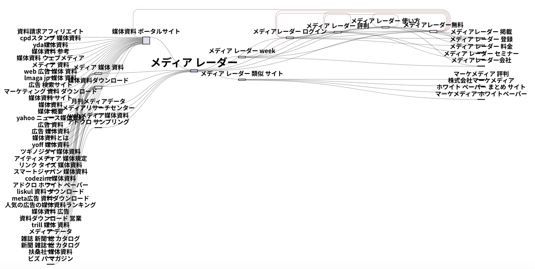 「メディアレーダー」の利用者層がどのような検索経路で情報に辿りつき、どんな興味関心の文脈を持つのかを可視化する。かを可視化する。