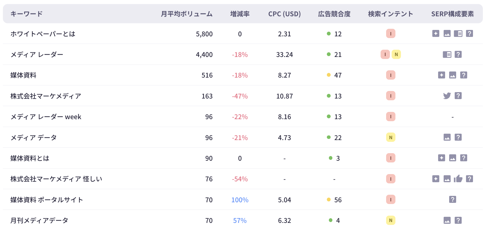 根拠: 「媒体資料」「メディアレップとは」「株式会社マーケメディア」など、媒体情報の詳細や企業情報検索が多いことから。 - マーケティングツールやサービスの理解促進が市場拡大に寄与する