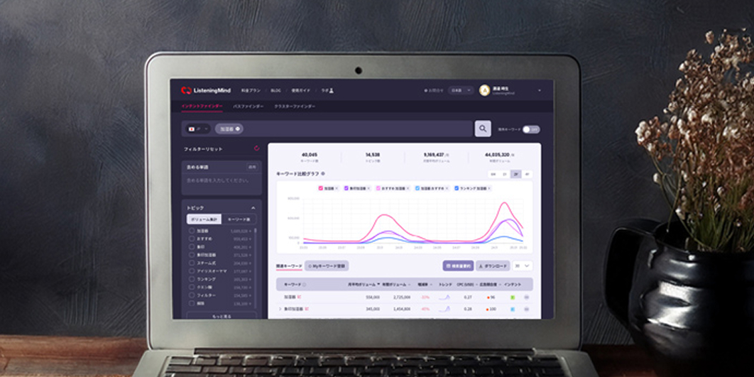 ListeningMindは、検索データから「顧客のホンネ」を可視化する市場調査ツールです。